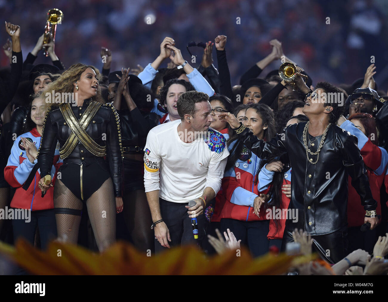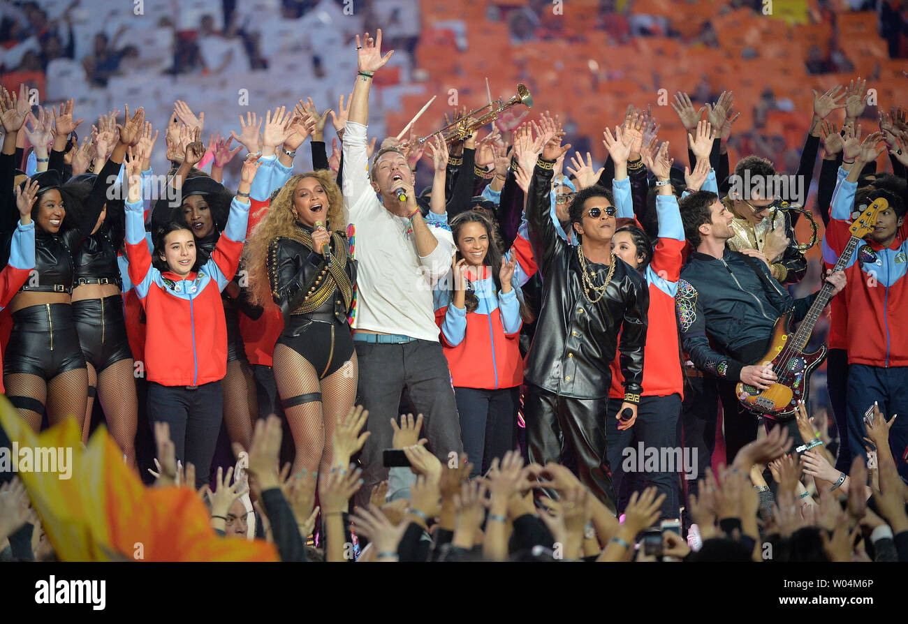 Beyonce Coldplay And Bruno Mars Perform During The Super Bowl 50