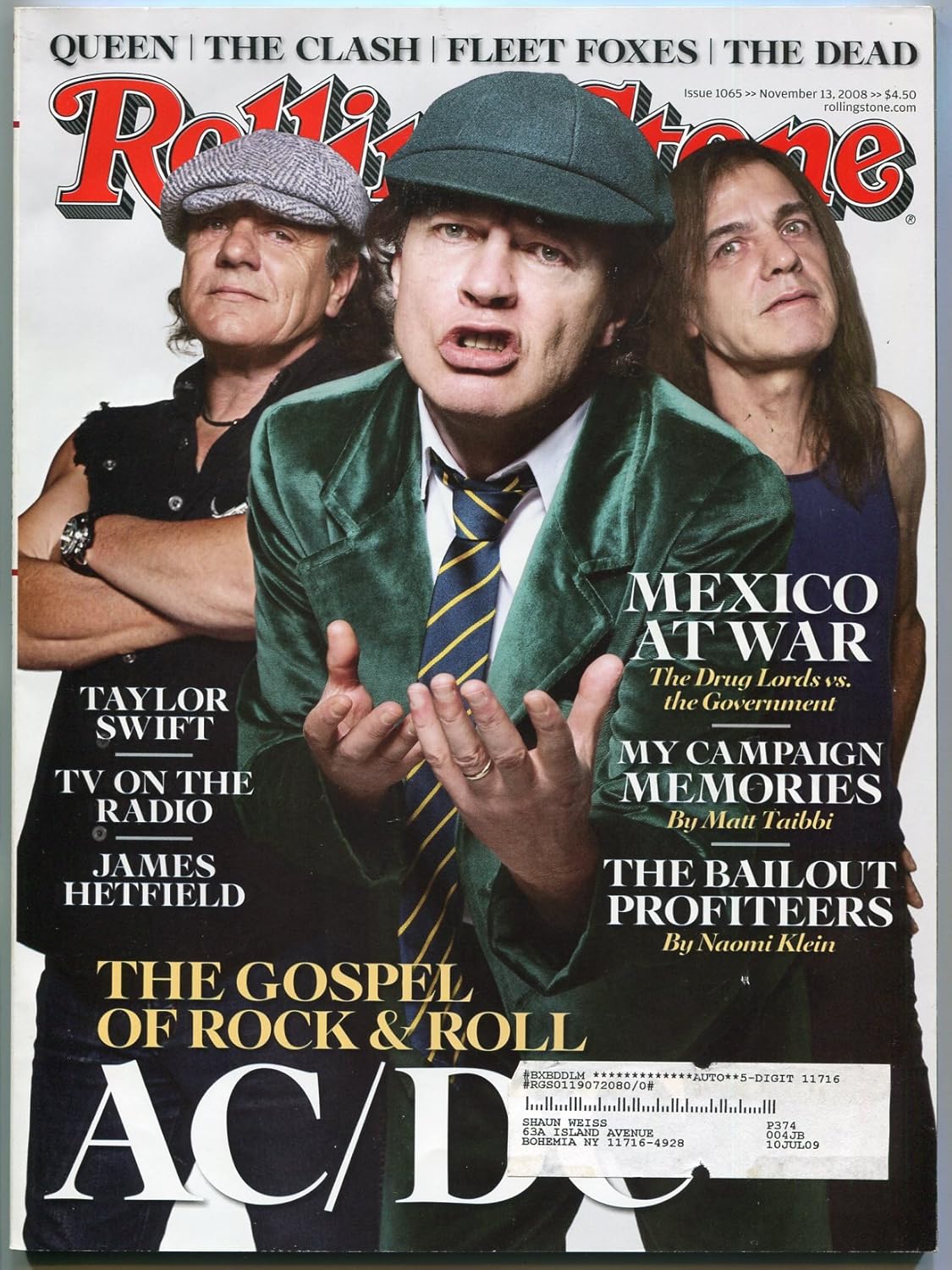 Rolling Stone Magazine November 2008 Ac Dc Brian Johnson