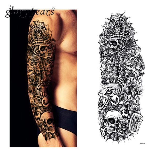 Water Transfer Tattoo Sticker Full Flower Arm Art Black Rose Flower Skull Snake Pattern Temporary Tattoo Sticker Qb 3021 Temporary Custom Tattoos